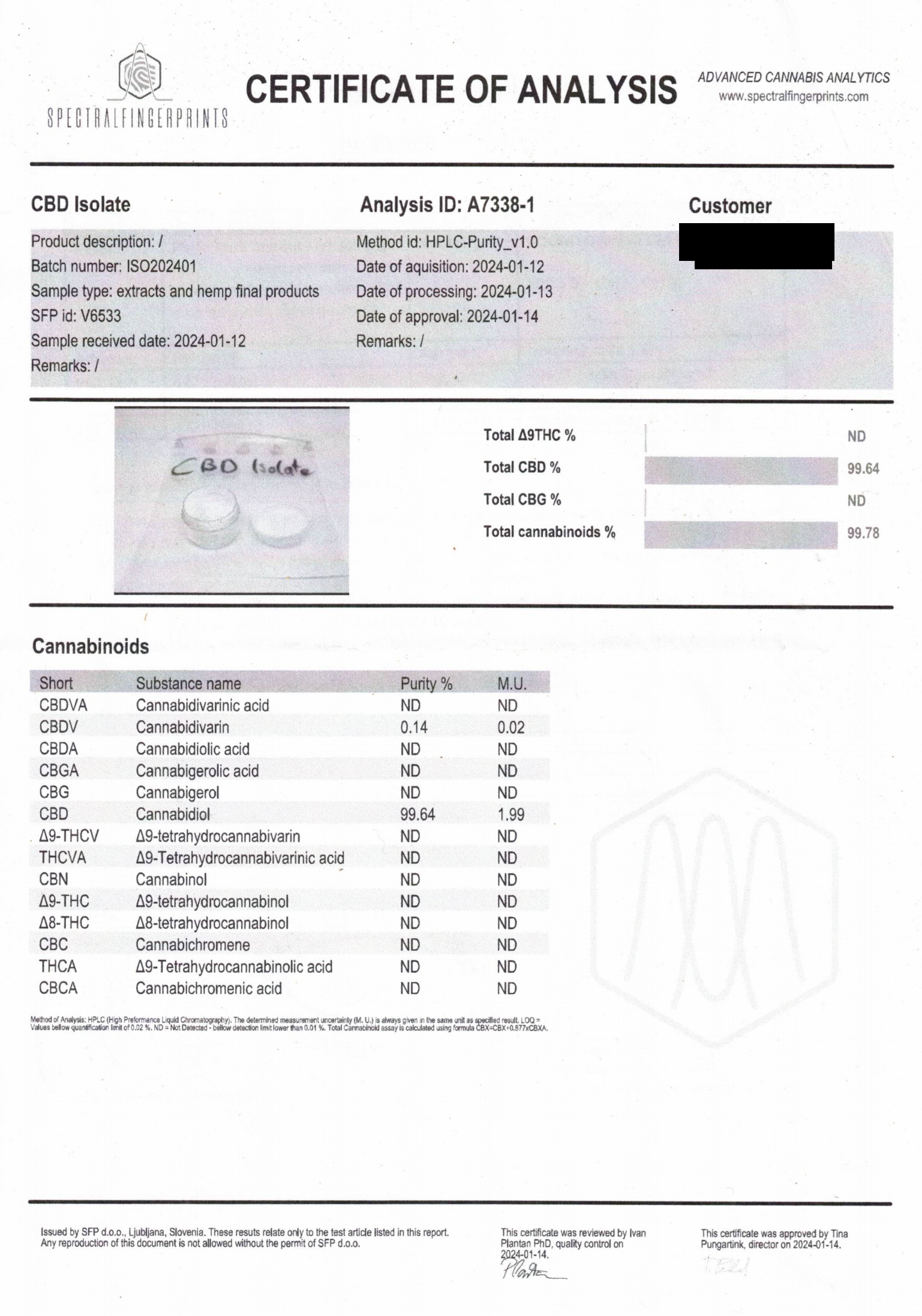 99,64% CBD Isolat (Kristalle in sehr feiner Form)